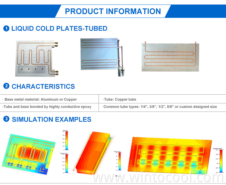 Our tubed water cold plates brazed or welded heat sinks are cost-effective and offer good bulk heat removal for low-to-medium watt densities. Applications include IGBT modules, Lasers, Electric Vehicles, Industrial power converters, UPS, Medical appliance and so on. Water or water/glycol are the most common fluids used in liquid cooling, it can also be gasoline, oil, and refrigerant as other examples.